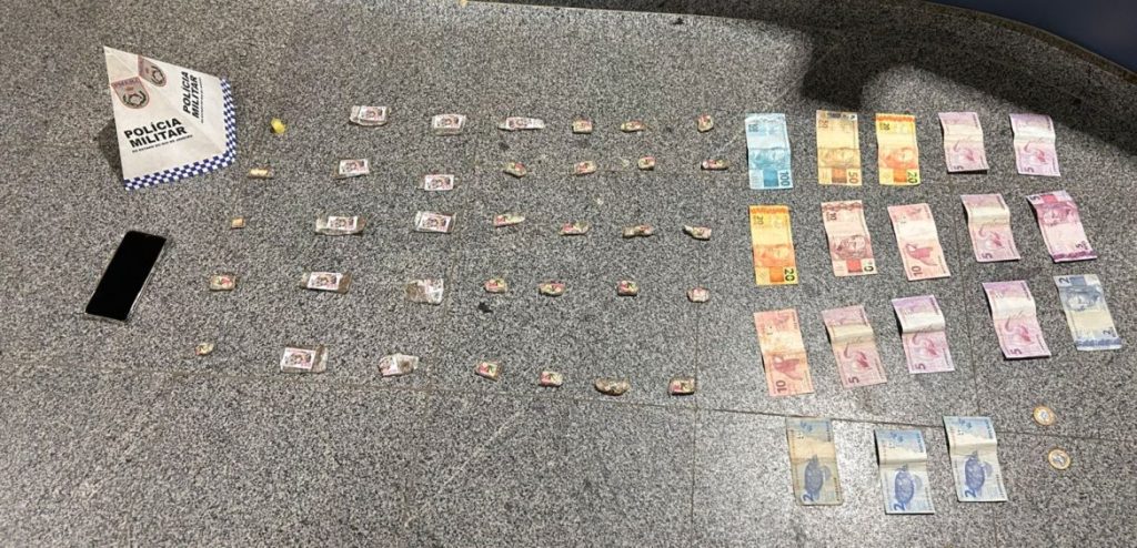 Durante a verificação inicial, os policiais encontraram dinheiro em espécie, um pino de cocaína e porções de maconha. Em seguida, em uma busca mais minuciosa realizada no foro do apartamento, foram localizadas duas bolsas contendo uma quantidade maior de entorpecentes.