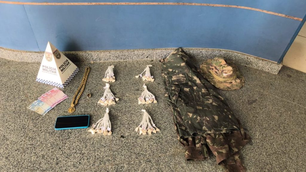 As guarnições realizaram cerco estratégico no imóvel e fizeram contato com o suspeito, que autorizou a entrada dos policiais. Durante buscas no quintal da residência, os agentes localizaram seis “aranhas” de cocaína — totalizando 60 pinos — escondidas dentro de um cano desativado, acondicionadas em sacola plástica. O próprio acusado teria confessado que o material lhe pertencia.