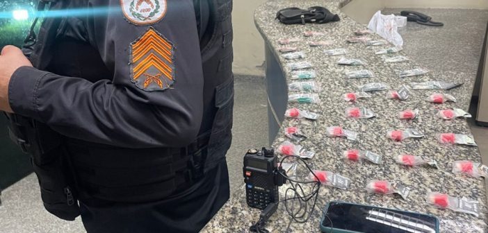 A equipe da 2ª Cia., por volta das 20h30min, esteve na Rua Miguel Gomes de Souza, por meio do Grupo de Ações Táticas (GAT) II, apreendendo 47 pinos de cocaína, seis de maconha, um rádio transmissor, um celular e R$ 10 em espécie.
