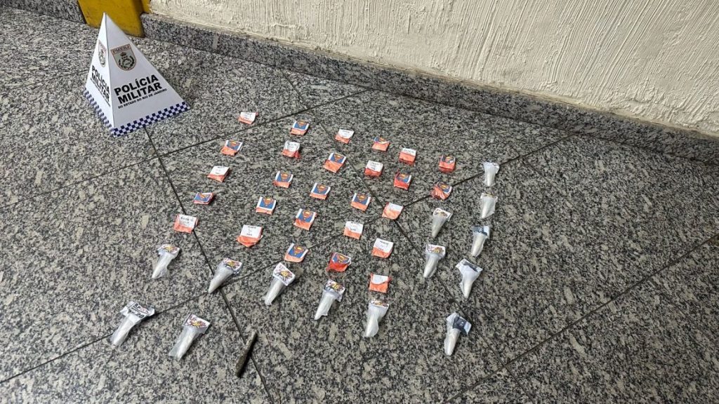 De acordo com a PM, durante patrulhamento de rotina, os agentes notaram a presença de indivíduos em atitude suspeita. Ao perceberem a aproximação da viatura, os suspeitos fugiram em direção desconhecida. Após buscas intensas na área, os policiais localizaram e apreenderam 27 pinos de cocaína identificados como “Pó de 20 CV TOCA”, 14 embalagens de cocaína “CV Gestão Inteligente Pó de 20” e uma tira contendo erva seca.